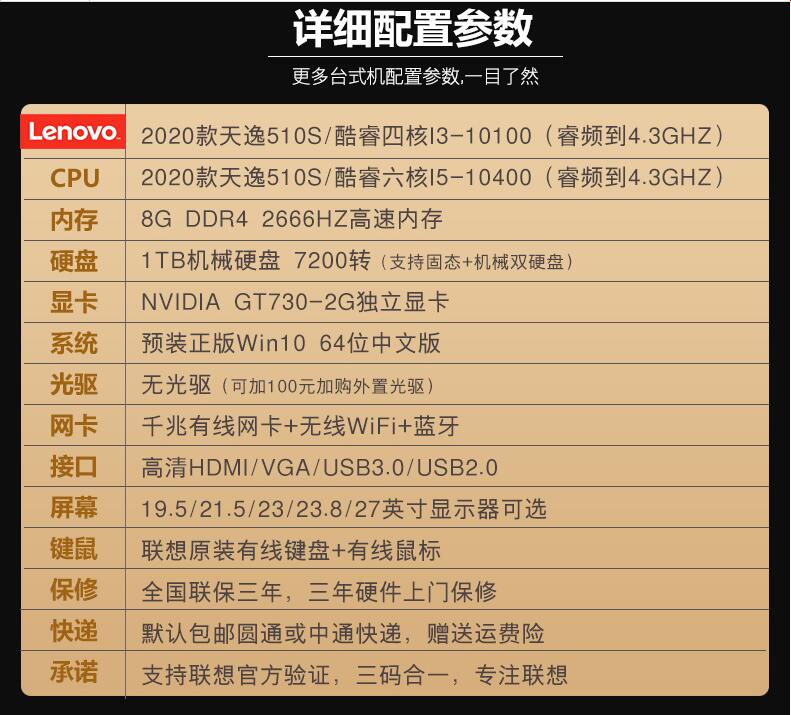 聯(lián)想臺式機電腦天逸510S/510PRO 十代六核I5-10400/四核I3 家用辦公商用財務炒股網(wǎng)課游戲設計全整套迷你主機